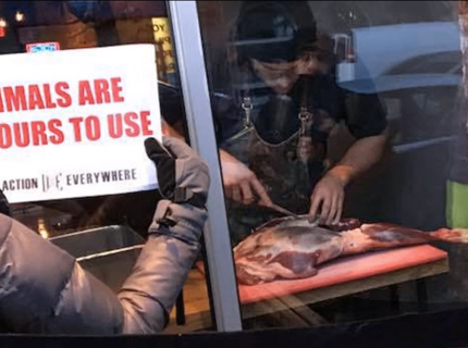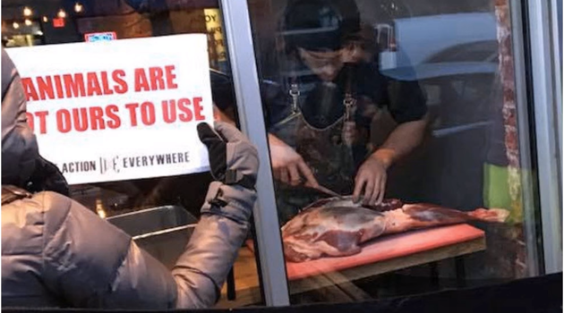 Ресторатор разделал и съел ногу оленя на глазах у протестующих веганов