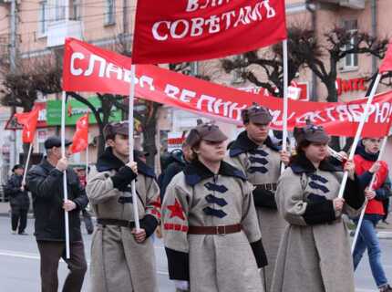 В Рязани к демонстрациив честь Октябрьской революции присоединились реконструкторы