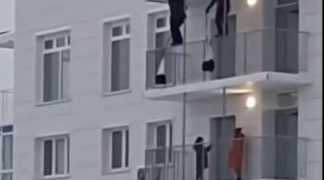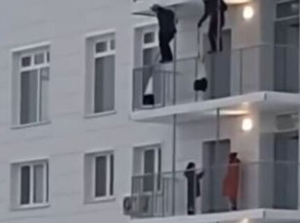 Россияне прыгнули с парашютом прямо с балкона