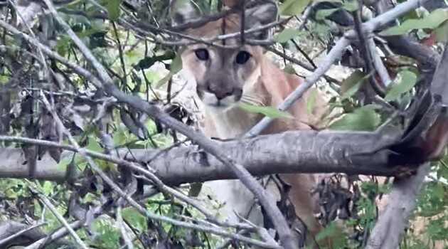 Дикая пума подкараулила пару на туристической тропе: видео