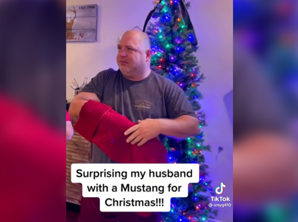 Женщина засняла реакцию мужа на Mustang в подарок и прославилась