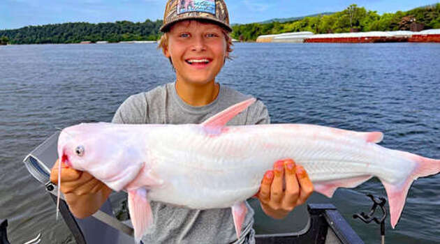 15-летний рыбак поймал редкого белого сома