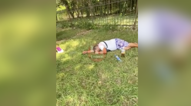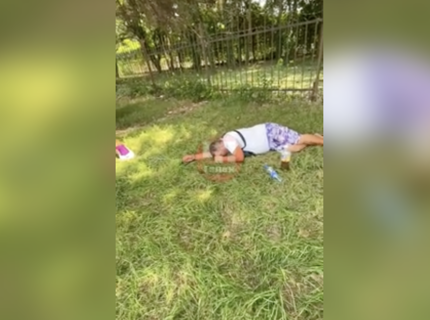 Обезьяна охраняла своего пьяного хозяина, пока он спал на лужайке