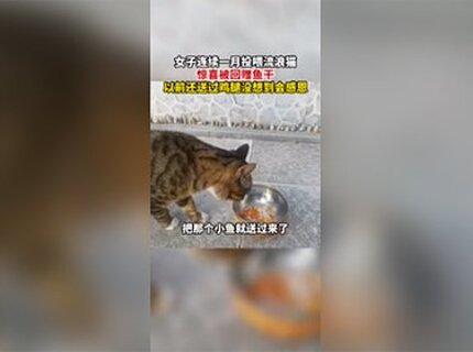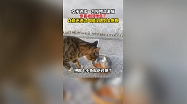 Бездомный котенок подарил женщине и ее сестре рыбу и куриную ножку