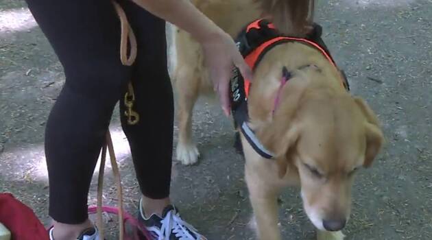Слепая спортсменка с собакой-поводырем разыскала пропавшую женщину