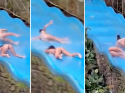 Девица не сдержала эмоций, снимая экстремальный спуск подруг с водной горки