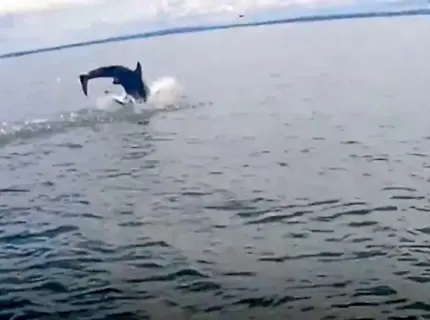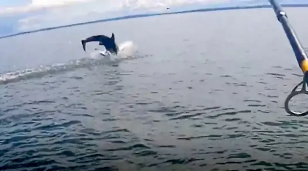 Рыбак чуть не обоср..., когда белая акула клюнула на его наживку и чудом не опрокинула байдарку - видео