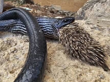 Змея попыталась проглотить дикобраза