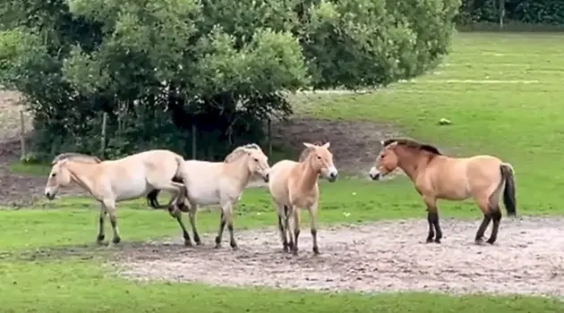 Попа к попе: два коня устроили потасовку и попали на видео в Дании