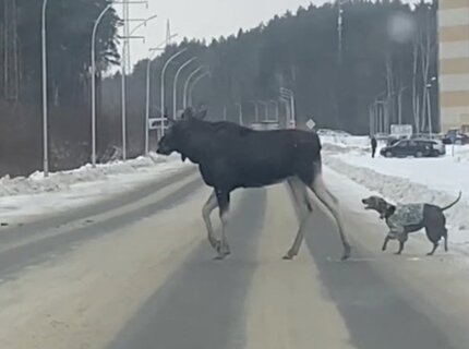 В Заречном лось проигнорировал попытку собаки поторопить его