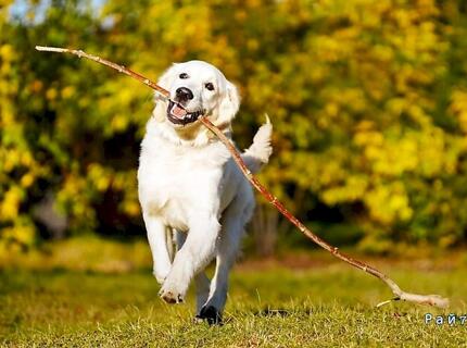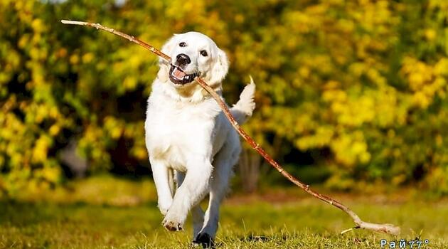 Пёс, зажавший в зубах палку и заставивший прыгать хозяйку, попал на видео