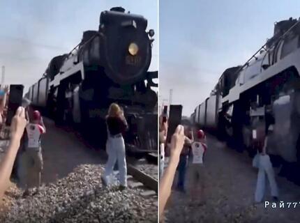 Старинный локомотив выбил смартфон у любительницы селфи в Мексике