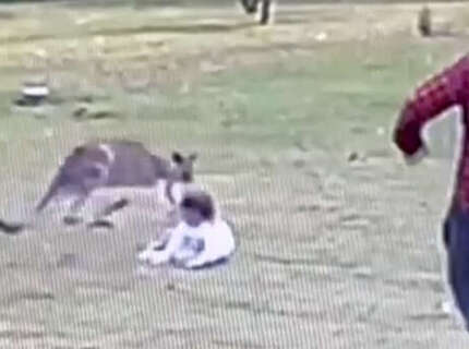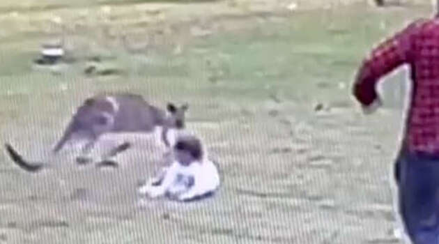Австралиец спас двухлетнюю дочь от агрессивного кенгуру и попал на видео