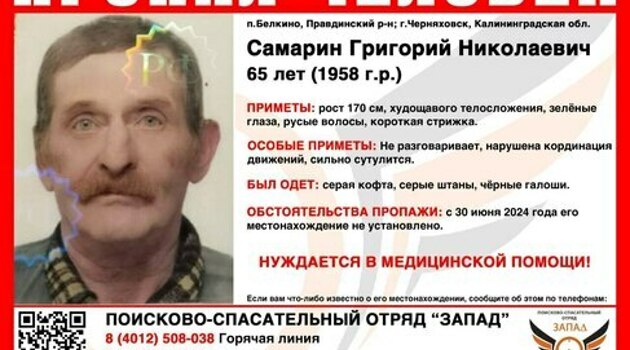 В Калининградской области пропал без вести высокий худой мужчина, лишившийся речи после инсульта
