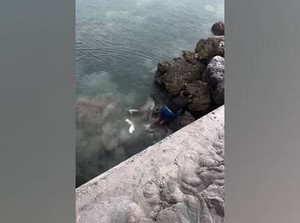 Мужчина едва спасся от акулы и попал на видео