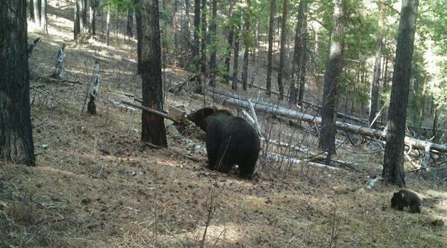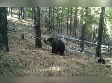 Медведица с детёнышем попали в объектив фотоловушки в лесу Забайкалья