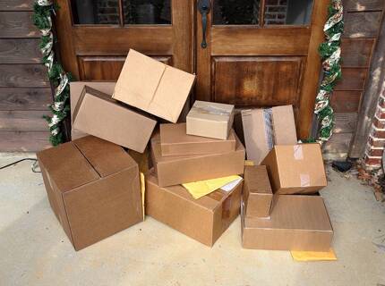 Двор женщины завалили сотней огромных и ненужных ей посылок