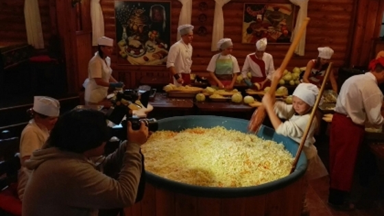 В одном из ресторанов Великого Новгорода заквасили две тонны капусты, сообщает агентство FlashNord. Капусту квасили по традиционному рецепту — с морковью и солью. На приготовление кадки ушло больше 12 часов. В процессе принимали участие десять профессиональных поваров, помогали им все желающие. Квашеная капуста будет готова через десять дней, тогда ею угостят всех, кто захочет продегустировать блюдо. Организаторы акции рассчитывают попасть в Книгу рекордов Гиннеса. В середине октября итальянские и французские пекари изготовили багет длиной в 122 метра в рамках международной выставки Expo-2015 в Милане. Кулинарный рекорд был зафиксирован представителями Книги рекордов Гиннесса, после чего разрезанный на куски хлеб намазали шоколадной пастой Nutella и раздали посетителям выставки. Над приготовлением багета в течение почти семи часов работали около 60 пекарей, делая в среднем за час около 20 метров батона. Они использовали специальную портативную печь. 1 октября в Новокузнецке выложили съедобный портрет «Джоконды». В создании картины длиной около двух и шириной один метр использовались только российские продукты — спагетти, телятина, сыры из Барнаула, краснодарский рис и отечественные мидии. Кулинары трудились несколько часов над подобием произведения Леонардо да Винчи. Гастрономическая картина получилась в семь раз больше оригинала. Общий вес съедобной «Джоконды» составил более 25 килограммов.