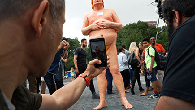 Статуя обнаженного кандидата в президенты США Дональда Трампа, которая стояла на крыше художественной галереи в арт-районе Уинвуд города Майами (штат Флорида, США), похищена неизвестными. Об этом в пятницу, 23 сентября, сообщает телеканал CBS. По словам очевидцев, трое мужчин забрались на крышу, сняли стеклопластиковую фигуру, погрузили в кузов пикапа и увезли. По номерному знаку был установлен владелец машины — им оказался 36-летний Педро Алехандро Родригез. Он объявлен в розыск в качестве персоны, интересующей следствие. Телеканал отмечает, что статуе при похищении отломали ноги — ступни остались на месте. Статуя Трампа без одежды в натуральную величину была создана представителями американской неправительственной организацией Indecline. Они установили пять идентичных статуй в пяти городах (Майами, Нью Йорк, Сан-Франциско, Кливленд и Сиэтл) в знак протеста против участия политика в президентских выборах.