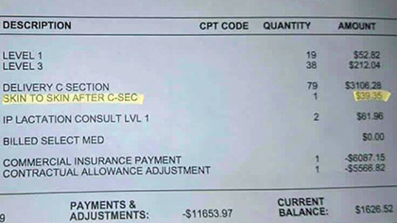 Жителю американского штата Юта выставили счет при выписке супруги из роддома за контакт со своим новорожденным ребенком. Об этом пишет Buzzfeed. Снимок счета был опубликован на Imgur и за два дня собрал более пяти миллионов просмотров. Как выяснилось, Райан Грэссли (Ryan Grassley) взял на руки ребенка, который появился на свет при помощи хирургической операции разреза матки (кесарева сечения). За дополнительные процедуры по уходу за новорожденным, которые потребовались после прикосновения, у мужчины потребовали 39,35 доллара. Как отмечает Daily Herald, Грэссли держал малыша, пока медсестра делала первую фотографию ребенка и его матери после родов. Представитель больницы сообщила, что деньги были сняты не за то, что американец взял ребенка, а за дополнительный уход, который потребовался новорожденному после контакта с кожей взрослого человека. В октябре 2015 года стало известно, что гражданке Тайваня выставили счет за роды на борту направлявшегося в США самолета. Пилотам пришлось посадить воздушное судно в одном из аэропортов Аляски, чтобы обеспечить безопасность новорожденного. Оплатила ли женщина около 33 тысяч долларов, неизвестно.