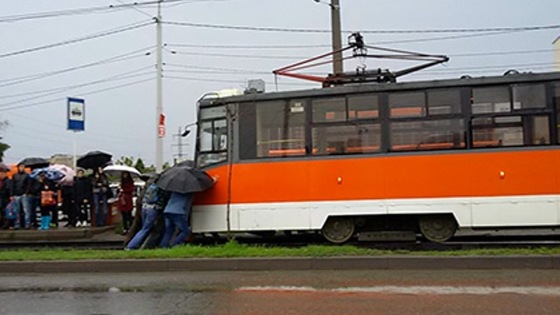 Пользователи социальной сети «ВКонтакте» посмеялись над жителями Краснодара, которым пришлось толкать в депо сломавшийся трамвай. Фотографии инцидента в пятницу, 14 октября, были опубликованы в группе «Интересный Краснодар». Подписчики сообщества предположили, что пассажиры пытались завести трамвай «с толкача», о чем написали некоторые местные СМИ. Кроме того, пользователи сети вспомнили случай в городе Игарка (Красноярский край), где вахтовикам пришлось толкать по взлетно-посадочной полосе самолет. Некоторые юзеры пошутили, что на фото запечатлены цыгане, которые пытаются украсть трамвай. Позже пресс-служба Краснодарского транспортного управления на своей странице во «ВКонтакте» назвала случившееся «зарядкой по-краснодарски» и поблагодарила неравнодушных граждан, оттолкавших трамвай в тупик.