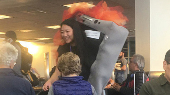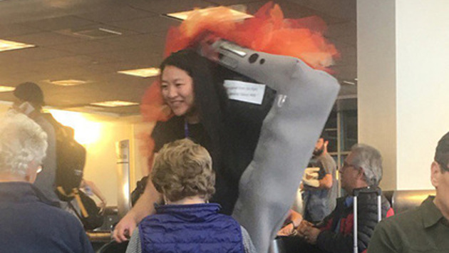 Стюардесса в костюме горящего смартфона Samsung стала звездой соцсетей
