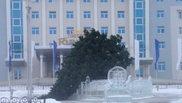 В Салехарде сильный ветер повалил праздничную елку на городской площади. Она была установлена перед главной гостиницей Ямала «Юрибей». Как отмечает ИА «Ура.Ру», дерево не просто свалилось на бок, а сложилось в весьма причудливую позу. Это и вызвало многочисленные ироничные комментарии жителей города в соцсетях. Так, елку назвали «увядшей» и «приунывшей». А некоторые посчитали, что она «сама пытается уползти с площади» и сделали вывод, что «елку надо убирать вовремя». Руководство гостиницы пока отказывается комментировать произошедшее.