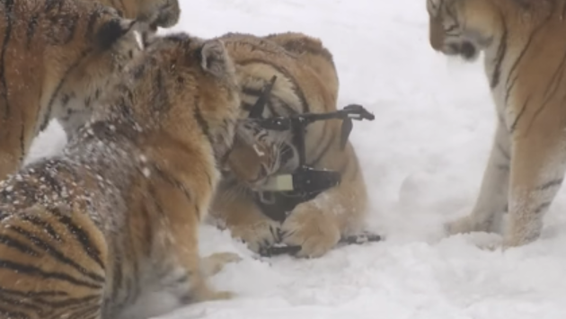 Амурские тигры, обитающие в национальном парке в китайской провинции Хэйлунцзян, сбили и погрызли снимающий их беспилотник. Видео опубликовал на своем YouTube-канале телеканал CCTV+. На ролике упитанные хищники гоняются за летающим на низкой высоте аппаратом. В какой-то момент один из тигров подпрыгивает и сбивает его, после чего стая начинает с интересом рассматривать беспилотник вблизи и пробовать его на зуб. После нескольких укусов дрон начинает дымиться. 8 февраля сообщалось, что фотографии растолстевших амурских тигров в китайском зоопарке города Харбин (административный центр Хэйлунцзян) развеселили пользователей сети.