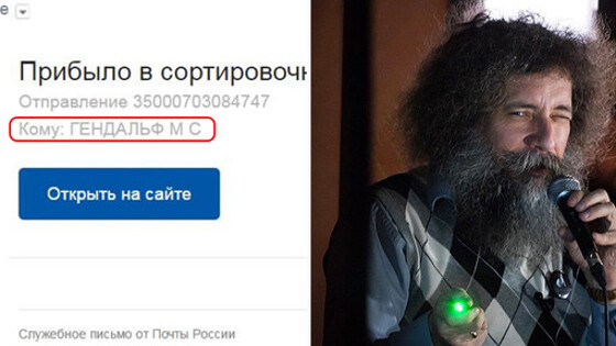 В сервисе «Почты России» по отслеживанию посылок и писем доктора биологических наук, биоинформатика Михаила Гельфанда записали как Гендальфа. Об этом он сообщил на своей странице в Facebook. «Вот, наконец-то и докУмент есть. Не от кого-то там, от "Почты России"», — написал ученый. В комментариях Гельфанд добавил, что с его фамилией «уже были прецеденты, хотя не такие замечательные». Пост ученого заметил и представитель «Почты России» в социальных сетях Дмитрий Маркин. Он пояснил, что если на отправлении данные указаны верно, то при его получении проблем не возникнет. Он также отметил, что неправильная фамилия в системе не повлияет на скорость доставки посылки. Волшебник Гэндальф — персонаж повести «Хоббит, или Туда и обратно» и романа «Властелин Колец» английского писателя Джона Рональда Толкина. Во всех шести экранизациях книг его сыграл британский актер Иэн Маккеллен.
