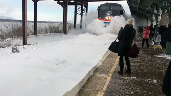 В интернете набирает популярность ролик, на котором видно, как поезд на большой скорости проезжает по неочищенным от снега рельсам. Проезд локомотива был снят с пассажирской платформы. Видео было опубликовано на