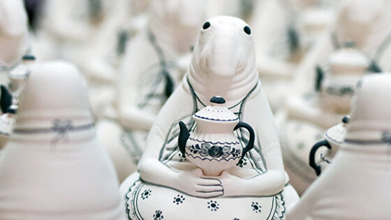 Сотрудники Гжельского фарфорового завода, где придумали собственную версию скульптуры Ждуна, рассказали корреспонденту Sputnik Латвия, как возникла идея сделать "гждуна" и как к нему отнеслась создательница — нидерландская художница Маргрит ван Бреворт. Сам "гждун" не слишком сложен в изготовлении, так как состоит лишь из двух деталей — самой фигурки и фарфорового чайничка, который та держит в руках. Самой трудной частью создания полноценной фигурки является роспись, которая занимает 20-25 минут. Это тонкая и кропотливая работа — надо добиться, чтобы краска не потекла и не выгорела при обжиге, пояснили работники завода. "Мы его сначала для себя сделали. И совершенно неожиданно он очень многим понравился", — рассказала Sputnik Латвия одна из работниц предприятия. Затем, по словам руководителя пресс-службы предприятия Константина Беркова, фотографию фигурки выложили в соцсетях, связались с автором скульптуры и даже отправили ей одного "гждуна". Художница в ответ пообещала посетить завод во время поездки в Россию. "Так что надеюсь, что, может быть, даже возникнет плодотворный союз", — заявил он. На предприятии надеются вернуть молодому поколению интерес к народным промыслам, в значительной степени утраченный в начале 1990-х годов. "При СССР Гжель была раскрученным трендом. Но сейчас это — не модная посуда. Люди, которые раньше ценили и покупали гжель, уже состарились. А для молодежи, которой сейчас 17-20 лет и которая уже платежеспособна, тарелка или кружка в стиле "гжель" не имеет никакой ценности. Основная задача для нас была найти подход к новому поколению. И так появился "гждун", — рассказал Sputnik Латвия коммерческий директор завода Александр Федоринов. Кроме "гждуна", на заводе планируют выпускать фигурки других популярных в сети персонажей. Например, рассматривалась идея создать расписанного под гжель "Губку Боба Квадратные Штаны", — героя известного американского мультсериала. Сам Федоринов, уроженец Риги, намерен продвигать продукцию завода на европейский рынок через Латвию. По его словам, Латвия хороша как "стартовая площадка", так как почти все говорят на русском языке. При этом в Москве создана более благоприятная для предпринимателей обстановка — в Латвии после открытия бизнеса предпринимателю приходится сразу иметь дело с многочисленными проверками и отчетностью, чего нет в России, рассказал он.