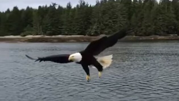 Пользователь Facebook Эштон Филлипс опубликовал видео, в котором орел пикирует на его лодку и крадет рыбу.