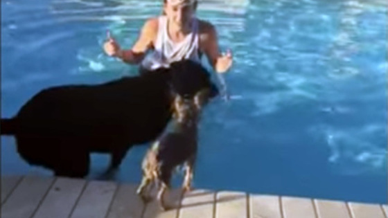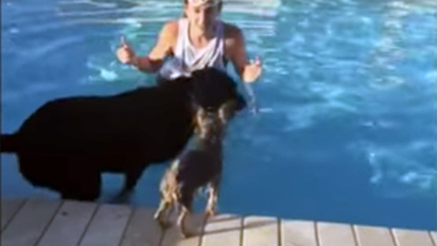 На YouTube набирает популярность видеоролик с йоркширским терьером, который поплавал в бассейне с помощью лабрадора. Находящаяся в воде хозяйка собак уговаривает меньшего питомца составить ей компанию.Тот в ответ только испуганно лает. После того, как в бассейн спустился стоявший рядом лабрадор, терьер прыгнул ему на спину.