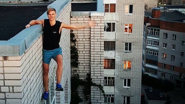 Семнадцатилетний руфер Андрей увлекался экстремальными фотографиями. Он покорил не одну крышу и старательно готовился из раза в раз, продумывая страховку. Но этот снимок стал последним: руфера подвел порвавшийся трос, за который держался молодой человек. Фото сделано за 10 секунд до его смерти.