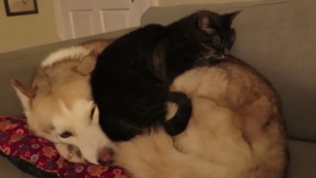 Иногда своенравные и свободолюбивые кошки ведут себя не просто беззастенчиво, но и по-настоящему нахально: огрызаются, таскают еду из собачьей миски, забираются на лежанку добродушного приятеля, а то и вовсе умудряются заснуть на собаке, как сделала героиня ролика.