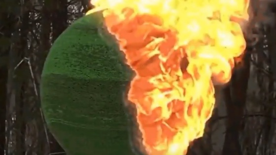 Но на этом эксперимент не закончился, а перешел на новый уровень. Художник поджег шар и опубликовал завораживающее видео на своем канале.