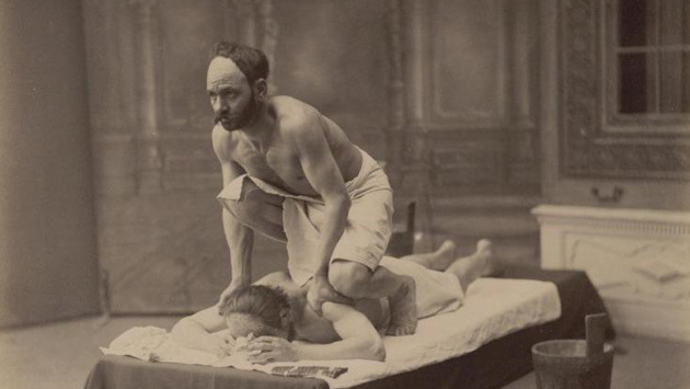 В отличие от тренировок надкостницы при нанесении ударов, которые делают кулак, голень или любую другую ударную поверхность тела невосприимчивой к боли, этим упражнением, мы тренируем мозг, а не тело. Поэтому здесь нужно максимально расслабиться, успокоиться, ни в коем случае не зажиматься и не задерживать дыхания. Партнер же в это время должен создавать терпимые болевые зажимания и надавливания в зоне трапециевидной мышцы, передней поверхности шеи и в районе ребер. Такой «массаж» выполняться должен около 10 минут до терпимой боли.