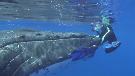 Женщина-дайвер плавала под водой, изучая поведение горбатых китов. Внезапно один из них подплыл к ней и стал выталкивать на поверхность плавниками. Второй бил хвостом: представьте себе тревогу, которую воплощает 14-метровый гигант, внезапно решивший проявить интерес.