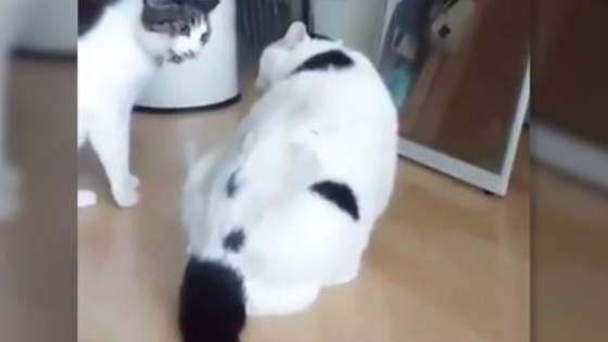 Толстый кот своим беспардонным поведением случайно разнял двух других котов, готовившихся к схватке. На кадрах ролика видно, как два кота угрожающе смотрят друг на друга и запугивающе мяукают, явно собираясь начать борьбу. Однако внезапно к ним присоединяется третий кот весьма внушительных габаритов. Сначала он изучающе посмотрел на присутствующих, а затем безмолвно завалился на бок, ошарашив коллег. Такого поворота коты-оппоненты не ожидали и от удивления прекратили противостояние. Один из них удалился, а другой ещё некоторое время смотрел на кота-миротворца.