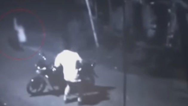 Придорожная камера наблюдения запечатлела невероятную картину: по безлюдному шоссе едет мотоциклист, но внезапно прямо перед ним возникает фигура женщины в белом одеянии.