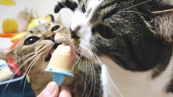 В Японии кошек действительно любят, и самые преданные владельцы животных не устают их радовать новыми игрушками и вкусной едой, например, мороженым. Готовится оно очень просто, достаточно взять любимый корм питомца, измельчить в блендере и с небольшим количеством воды и заморозить.