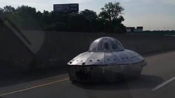 НЛО в небе — это уже неинтересно, как вам “летающая тарелка” проплывающая по оживленной автомагистрали?