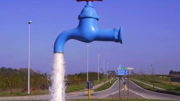 2. В городе Эль-Пуэрто-де-Санта-Мария (Испания) стоит гигантский кран, из которого течёт вода. Но кран висит в воздухе и ни к чему не подсоединён. Такой фонтан смотрится впечатляюще, а туристы не упускают возможности сделать пару фотографий.