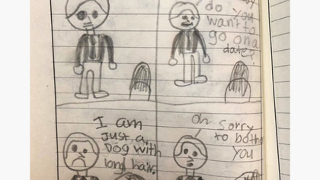 «Моя дочь недавно начала писать комиксы. Это мой любимый», — прокомментировала снимок Сара. В абсурдной ситуации, изображенной ребенком, мужчина приглашает незнакомку на свидание. Однако она сообщает ему, что на самом деле является не женщиной, а длинношерстной собакой. «Ой, извините, что потревожил вас», — расстроенно реагирует парень.