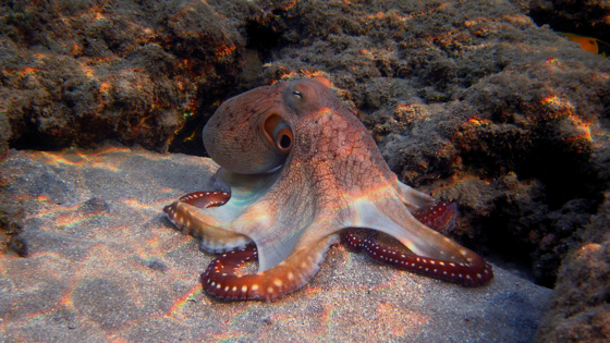 Дайвер, совершавший погружения возле Лазурного берега во Франции, снял любопытное видео. Его героем стал осьминог, который умело прятался на дне. Эти моллюски, как и хамелеоны, могут ловко маскироваться, сливаясь с окружающей средой. Сначала осьминог, не пожелавший привлекать к себе внимание человека, попытался притвориться камнем, потом пример на себя образ подвижной водоросли. Однако дайвер всё-таки обнаружил подводного жителя и подобрался к нему. Тогда осьминог резко сдвинуться с места и удалиться, оставив после себя облако тёмных чернил. Подобным образом осьминоги отпугивают хищников, охотящихся на них.