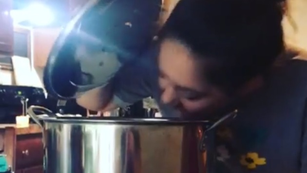 В конце апреля пользователи вспомнили про ролик, который был сделан для Snapchat в прошлом году. На видеозаписи девушка наклоняет лицо над кастрюлей, кричит в посуду, быстро закрывает кастрюлю крышкой, а после открывает ее и слышит эхо. (Осторожно, будет громко).