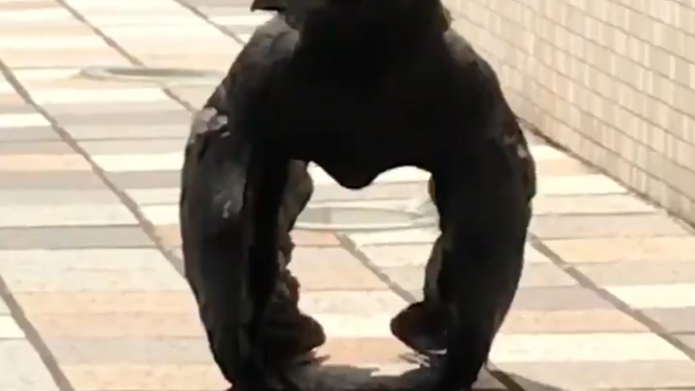 Японский пользователь Twitter опубликовал видео, на котором ворона стоит в необычной позе, растопырив крылья так, что они похожи на мускулистые лапы. Она как будто опирается на четыре конечности, что позабавило его подписчиков.