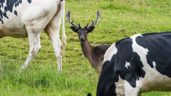 Свой среди чужих: оленя в Англии «усыновило» стадо коров