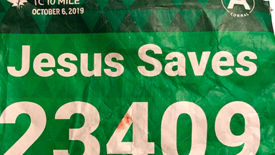 Бегун в майке «Иисус спасет» был спасен Иисусом