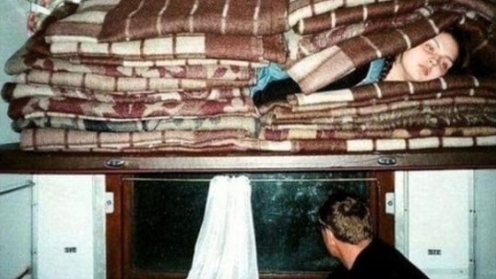 Вечно в поездах все забывают.... Возможно, в этом вагоне очень холодно, что, конечно, не скажешь по мужчине, который сидит внизу.